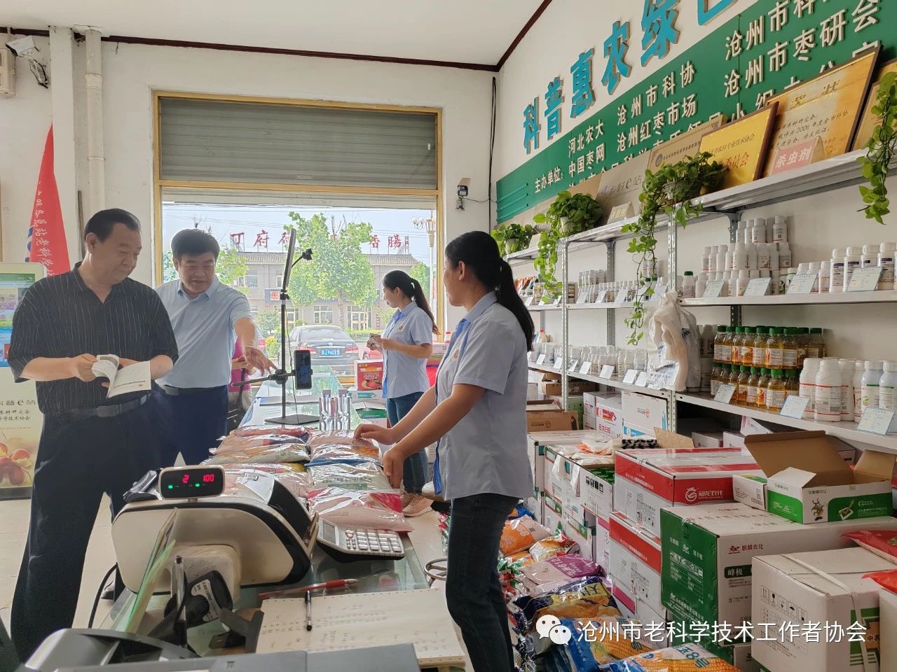市科普惠农服务总站老科协会长王超介绍,服务总站老科协成立了中国红枣科技志愿服务队、中国电商助农科技志愿服务队、农资供应服务中心、科普e站、电商直播培训基地。并且在沧县、泊头、东光、青县、黄骅等九个县市,89个乡镇,建有老科协分会265家,科普示范基地19个。在新疆和田、巴州、阿克苏等地也建有科普惠农服务站和科普示范基地。
