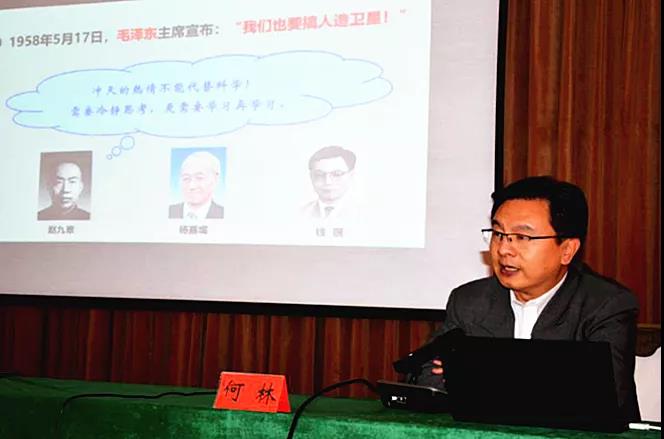 讲座中,何林按国家决策、以身许国、艰苦创业和大师风范四个篇章,用大量生动的事例为听众再现了新中国开国领袖和老一辈无产阶级革命家群体的伟大胸襟和超凡胆魄,再现了参加“两弹一星”研制的老一代科学家的崇高爱国热情和奉献精神。