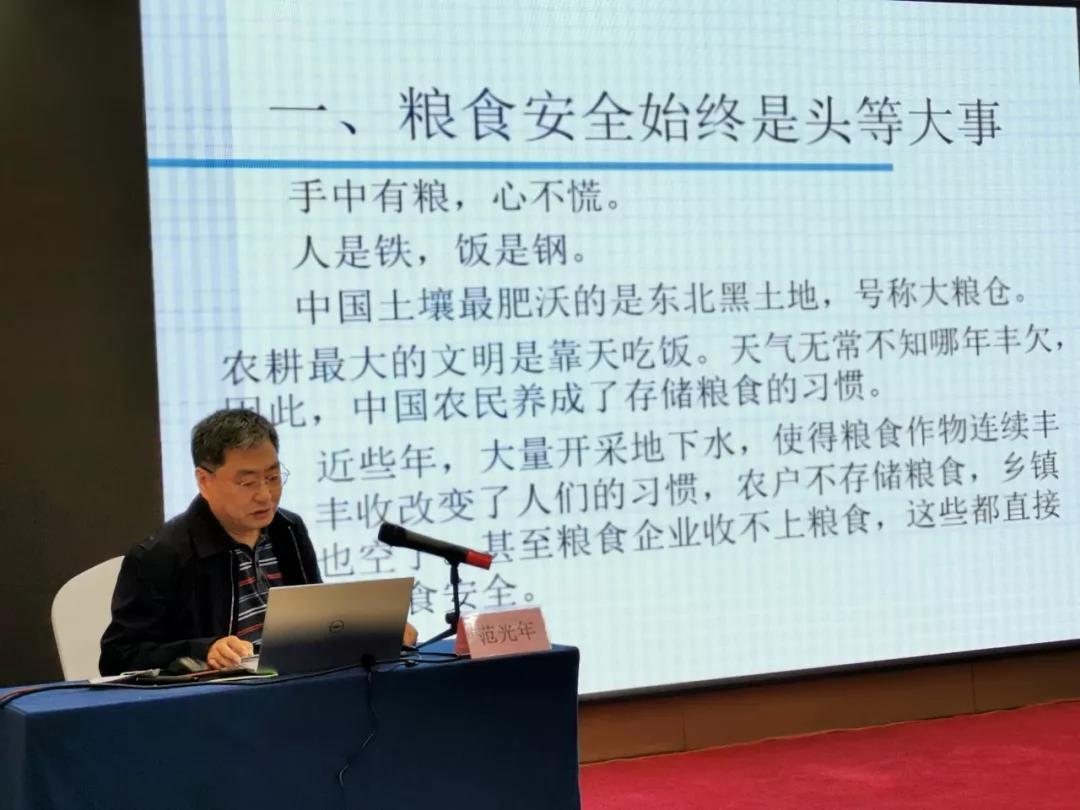 河北科技报原总编范光年以《乡村振兴—粮食安全与农业社会化服务模式》为题进行了科普讲座。他就世界及我国粮食生产、消费现状进行了全面阐述,对我省粮食生产规模化、土地托管社会化服务模式的成功典型进行了讲解,就推进粮食生产机械智能化创新提出了建议。