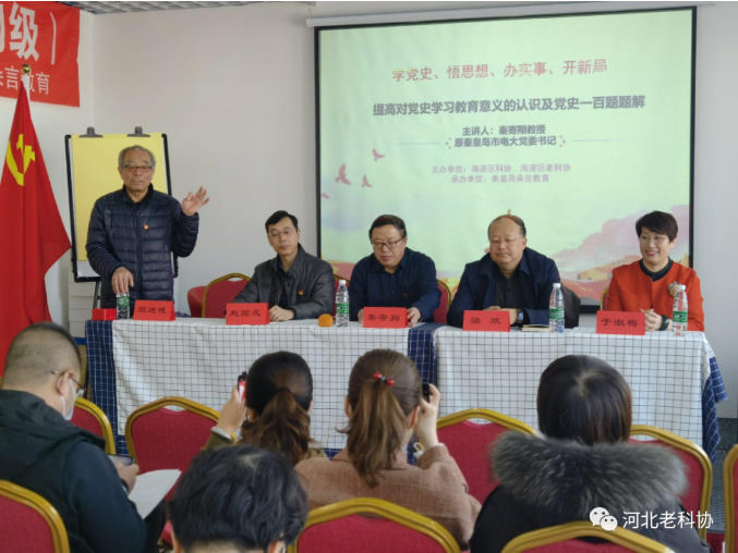 3月22日,秦皇岛市海港区科协、老科协的领导和各直属协会党员、预备党员、入党积极分子,在秦皇岛市科学素养培训基地举办了他们学党史教育第一课讲座。
