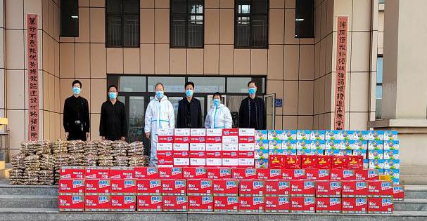 同时,高社光院长先后两次为鸡泽县中医院职工捐献芝麻酥 300 包、方便面 100 箱、火腿肠 70 箱、苹果 70 箱,总计两万余元。并多次主动要求进入封控病区为职工进行心理疏导,嘱咐大家增强自我防护意识、严格落实防控措施,鼓励大家团结一心抗击疫情。