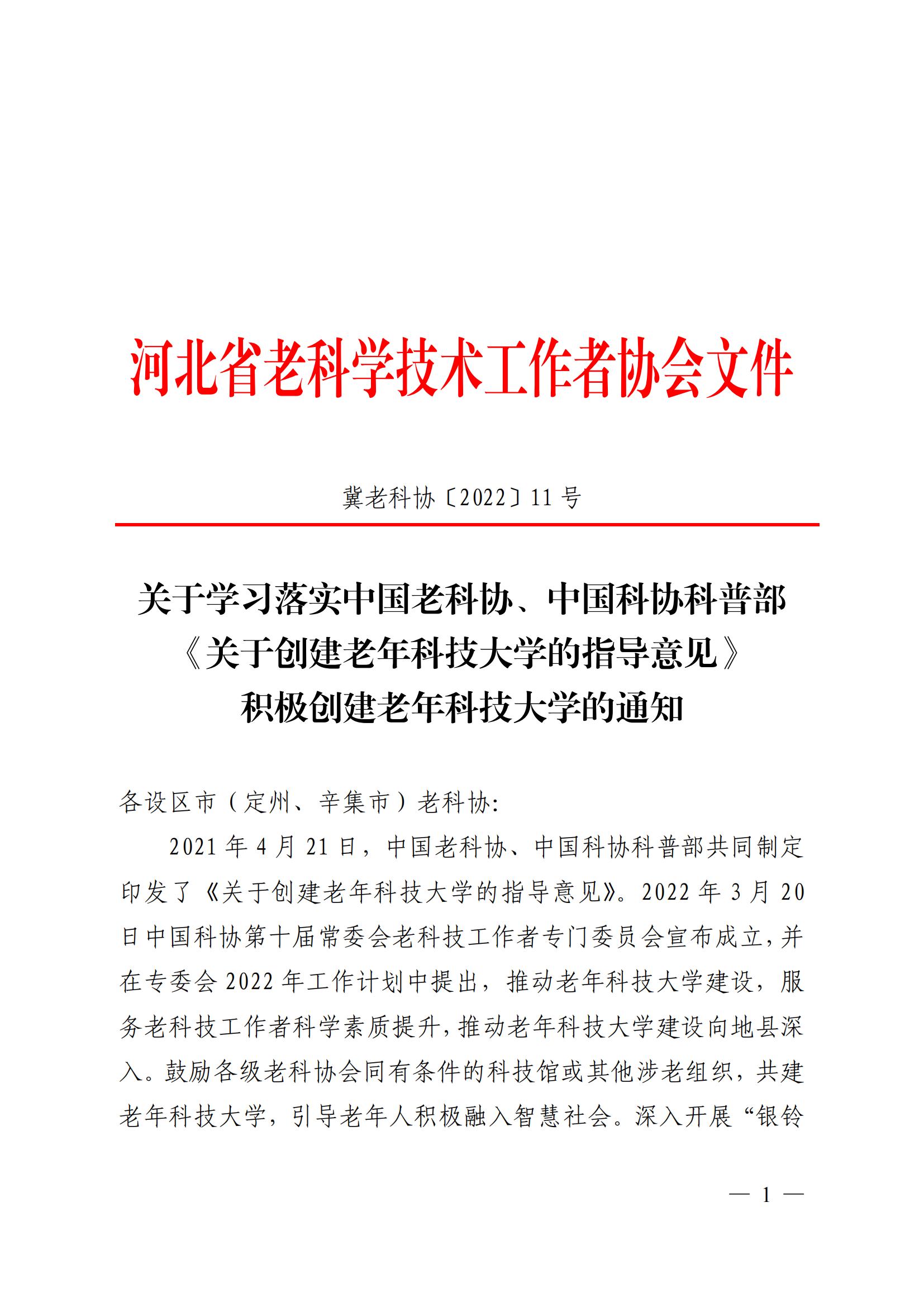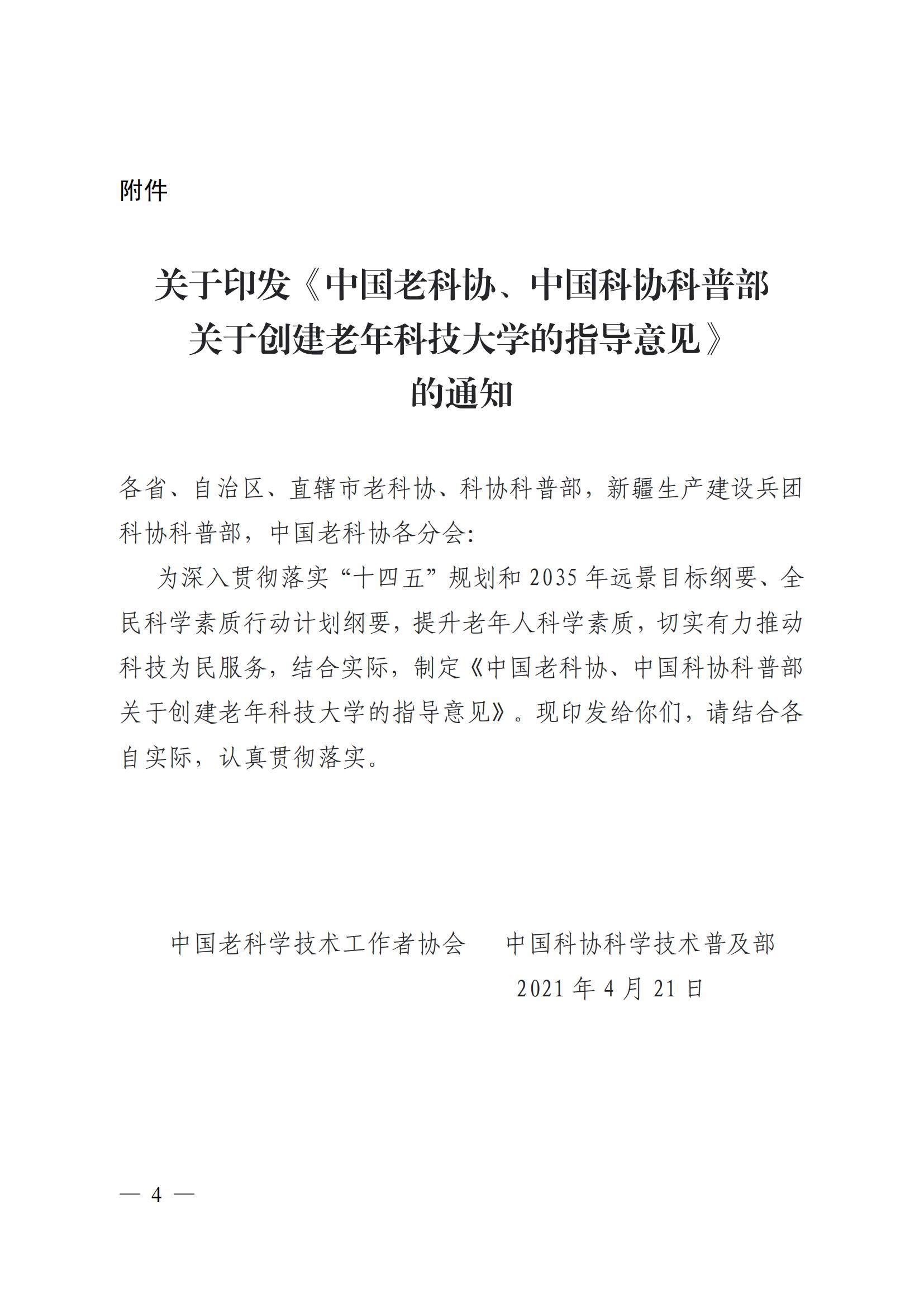 《关于创建老年科技大学的指导意见》积极创建老年科技大学的通知