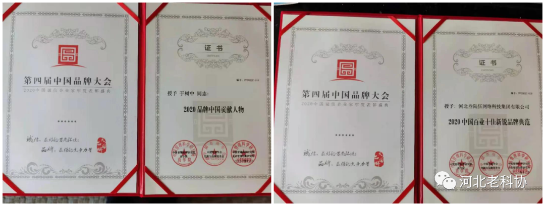 12月12日至13日,第四届中国品牌大会暨2020年中国诚信企业家年度表彰大会在北京举行,会上,河北省老科协副会长、河北365集团党委书记、董事长于树中被授予“2020中国品牌贡献人物”;河北365集团荣获“2020中国百业十佳新锐品牌典范”。